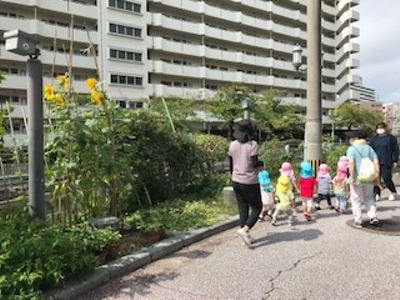 園から歩いていけるところに4箇所以上の公園があり、いろんな公園に行って楽しく遊んでいます。